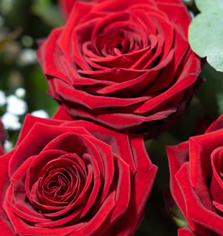 6 or 12 amazing Super long stem, large headed roses, styled in beautiful wrap & gift box, with seasonal foliage simply beautiful. Red Naomi roses are available in several grades - These are the most sustainable and best grade you can buy!